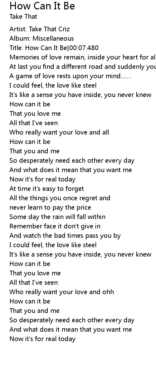| [00:-1.35]Title: How Can It Be[00:07.480] |