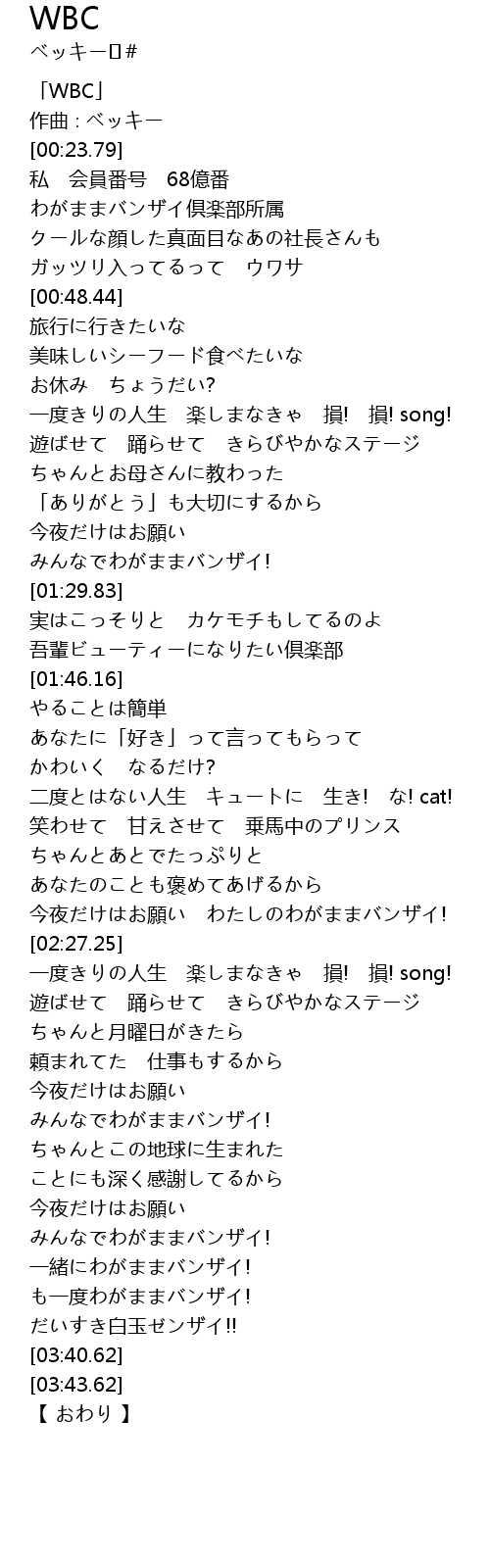 | [00:32.52] | わがままバンザイ倶楽部所属 |