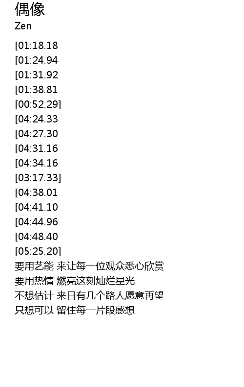 | [04:53.69][04:24.33][02:45.92][01:47.31][00:28.18] | 今天的他不错是偶像 |