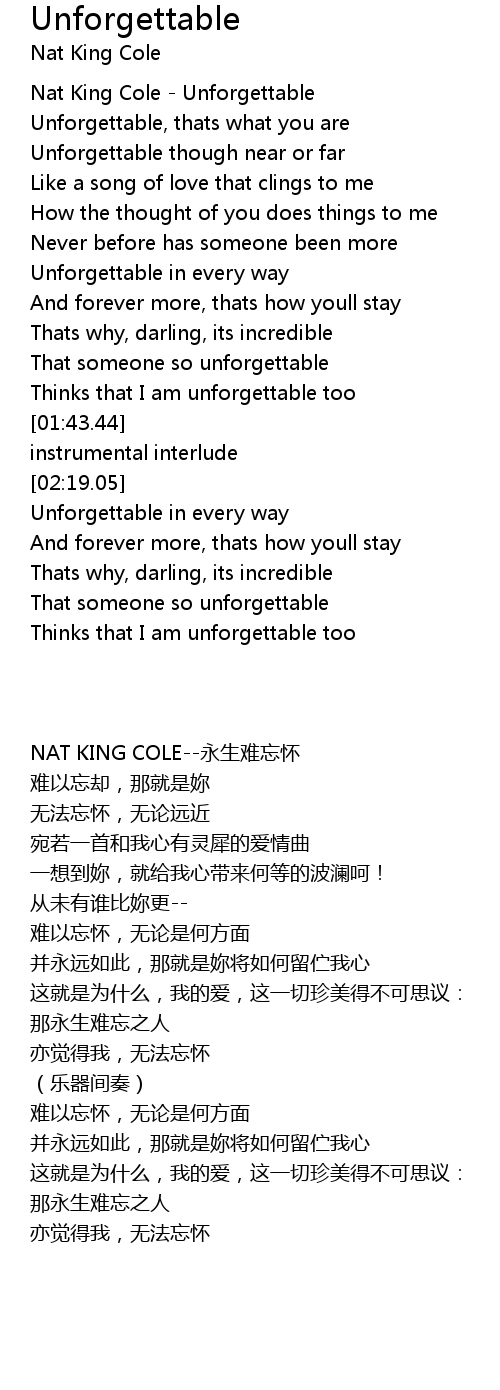 Unforgettable Lyrics