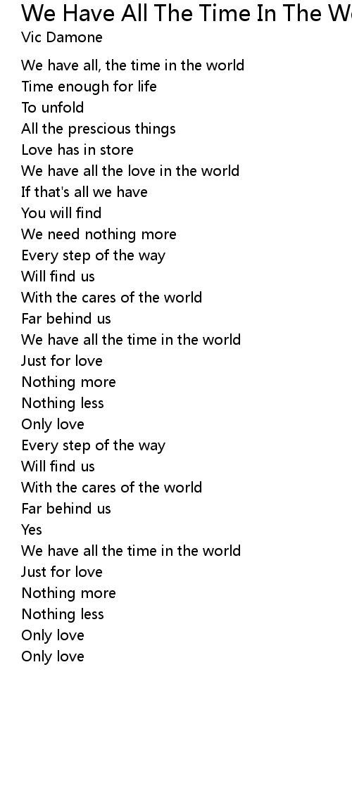 We have all, the time in the world |