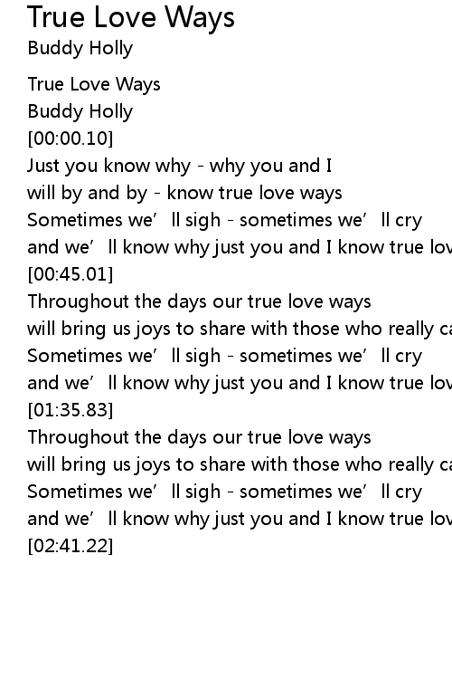 | [00:00.01] | True Love Ways |