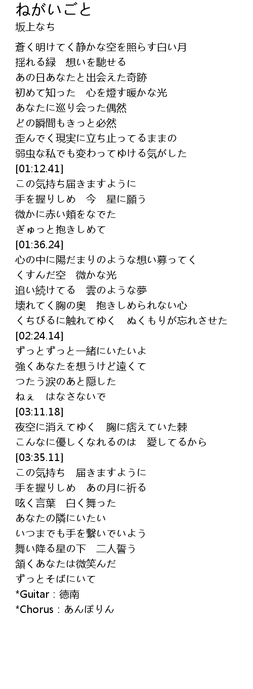 | [01:18.54] | 手を握りしめ 今 星に願う |