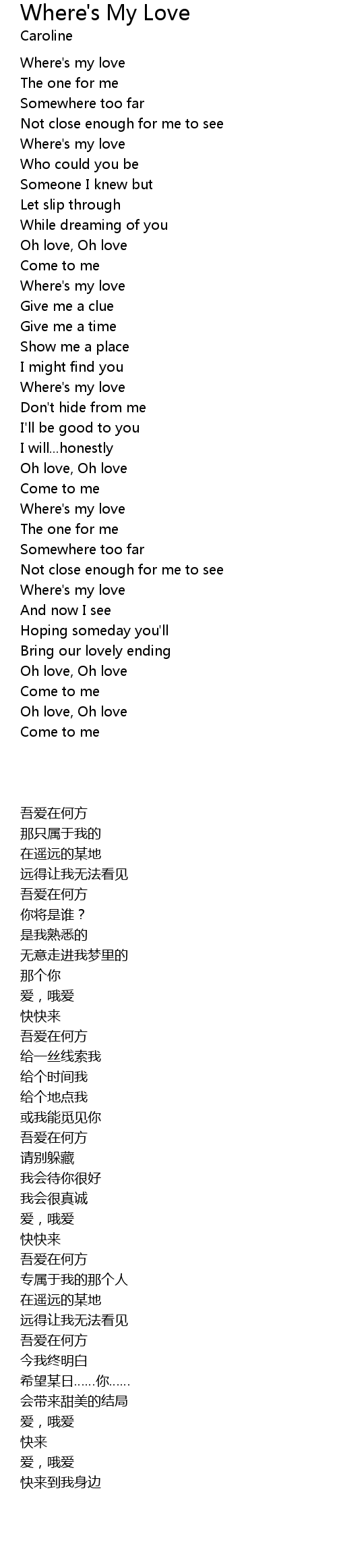 | [00:48.379] | Where's my love |
