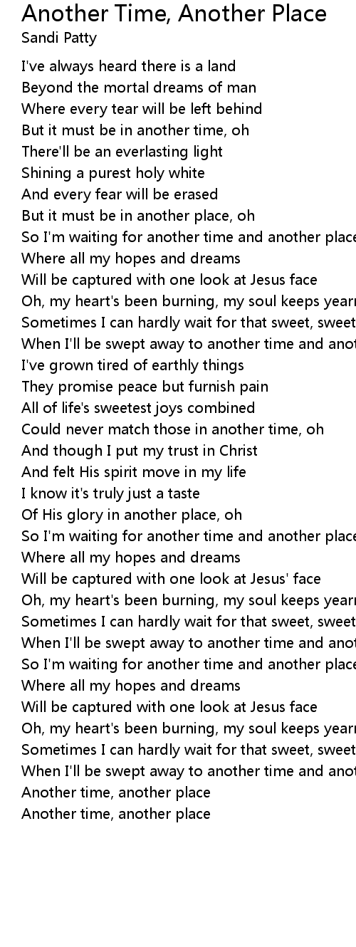 So I'm waiting for another time and another place |
