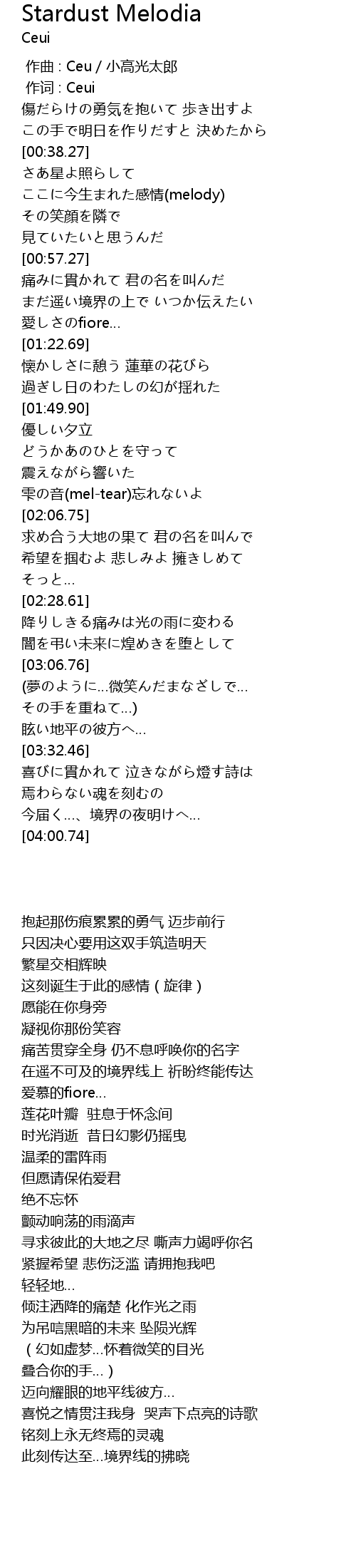 | [00:43.51] | ここに今生まれた感情(melody) |