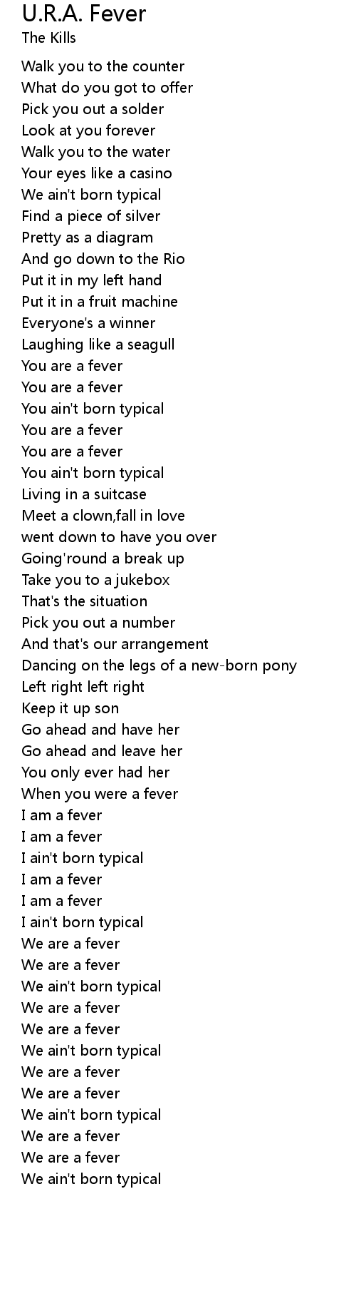 U.R.A. Fever Lyrics