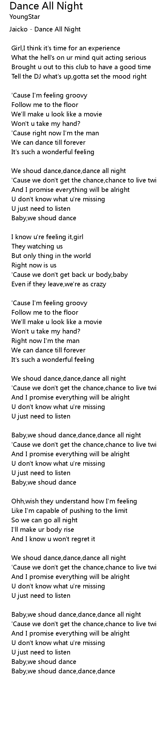 We shoud dance,dance,dance all night |