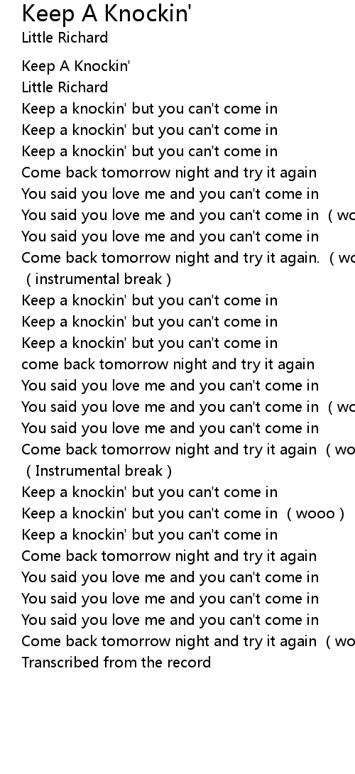 | Song | Keep A Knockin' |