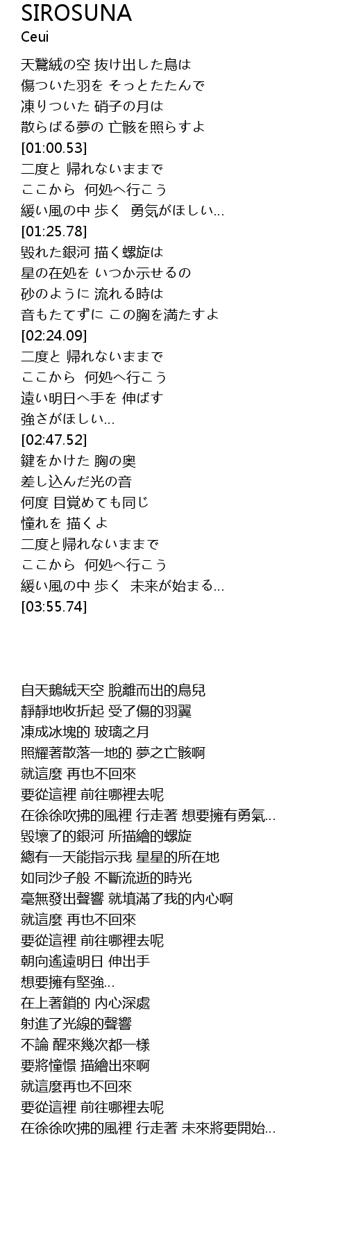 | [01:53.49] | 星の在処を いつか示せるの |