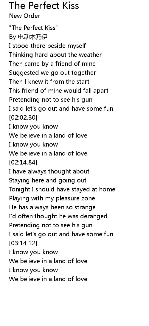 | [00:15.62] | "The Perfect Kiss" |