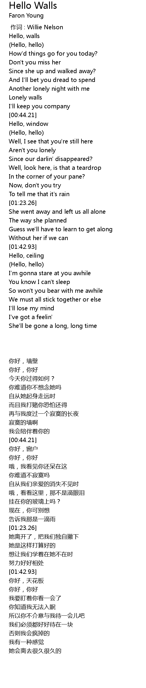 | [00:09.20] | Hello, walls |