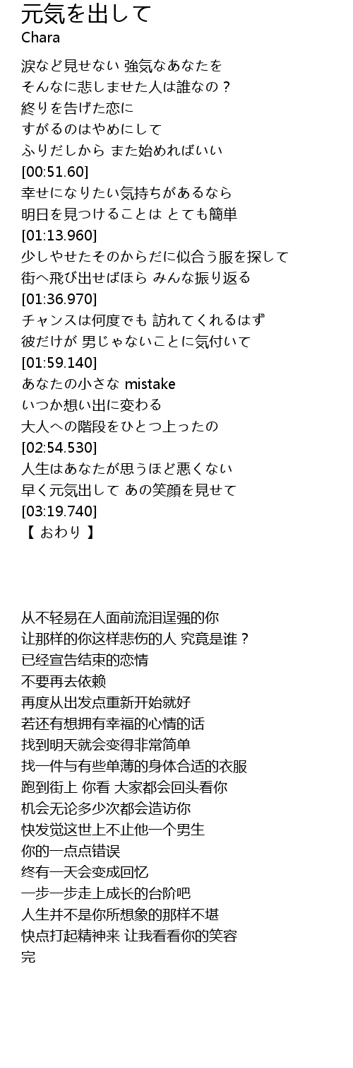 | [01:39.530] | チャンスは何度でも 訪れてくれるはず |