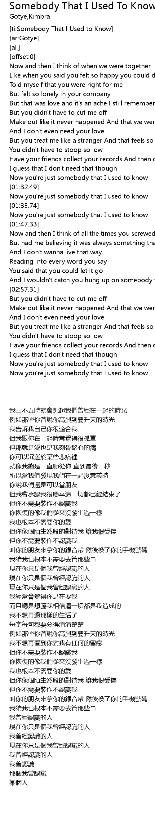 | [02:54.47] | And I wouldn't catch you hung up on somebody that you used to know... |