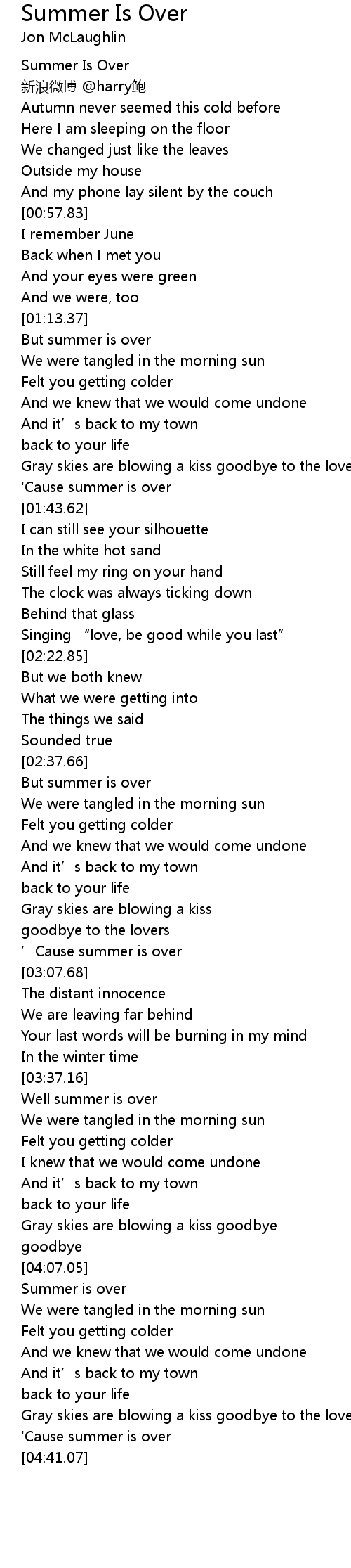 | [01:32.80] | Gray skies are blowing a kiss goodbye to the lovers |