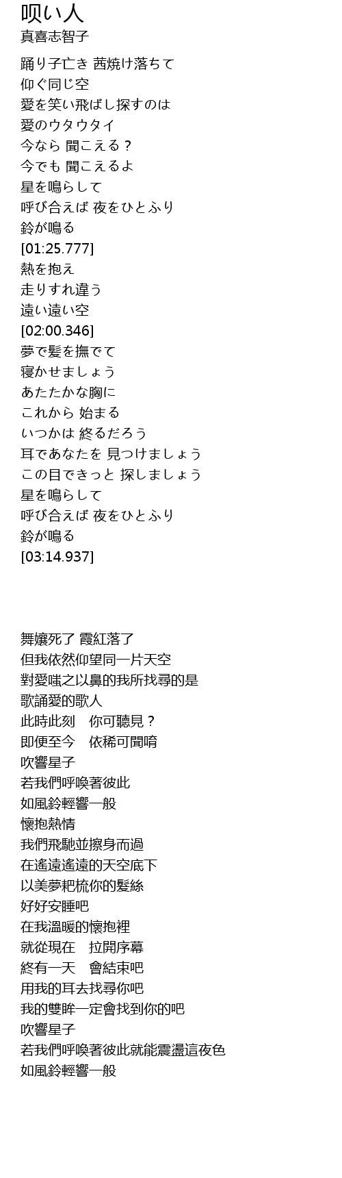 | [02:55.954] | 呼び合えば 夜をひとふり |