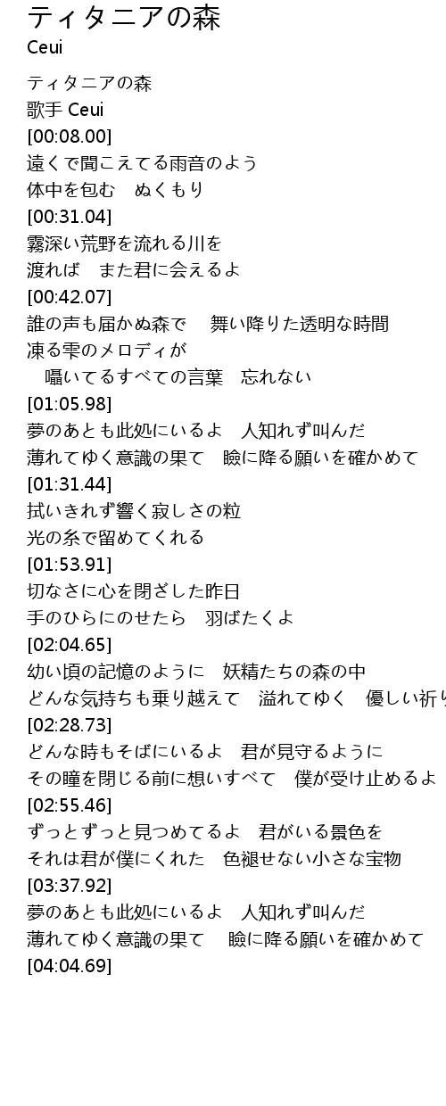 | [00:01.00] | ティタニアの森 |