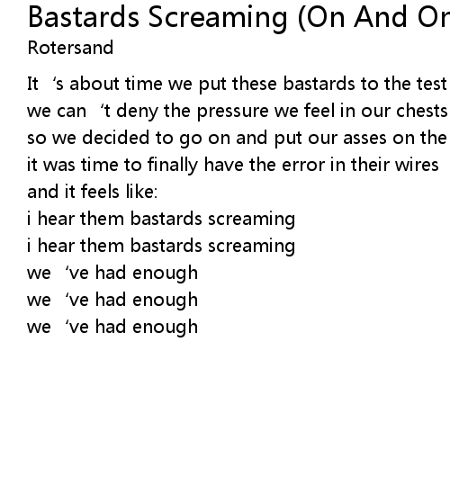 | Song | Bastards Screaming (On And On) |