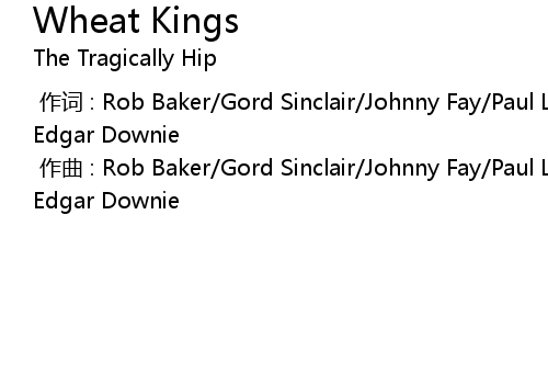 | [00:00.000] | zuò qǔ : Rob Baker Gord Sinclair Johnny Fay Paul Langlois Gordon Edgar Downie |