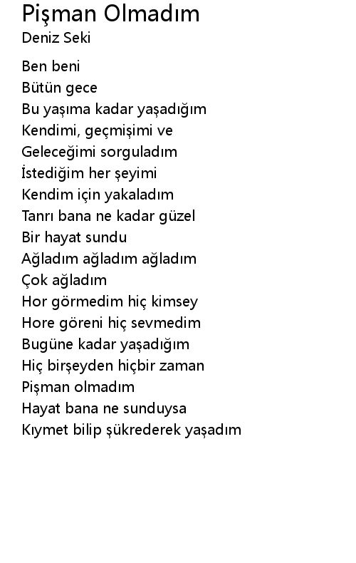 | Song | Pişman Olmadım |