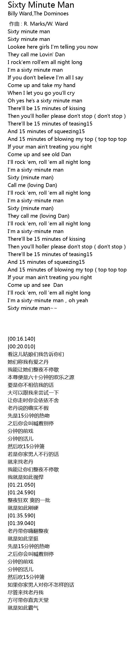 | [00:47.590] | Oh yes he' s a sixty minute man |