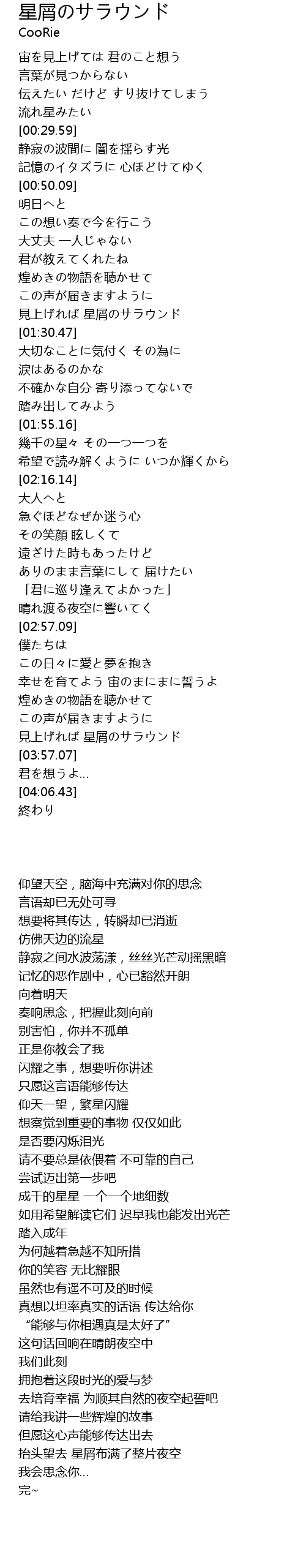 | [03:51.96] | 見上げれば 星屑のサラウンド |