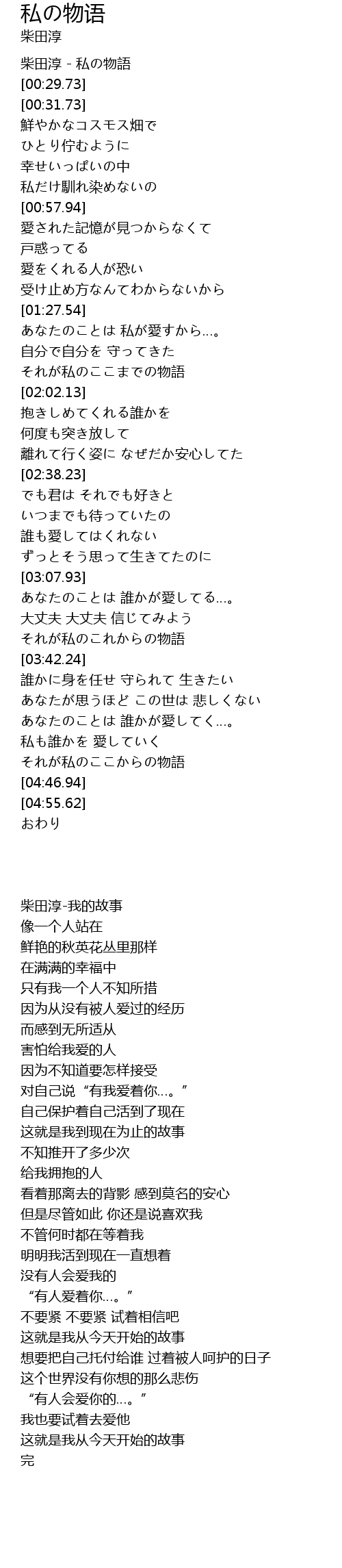 | [00:00.00] | 柴田淳 - 私の物語 |