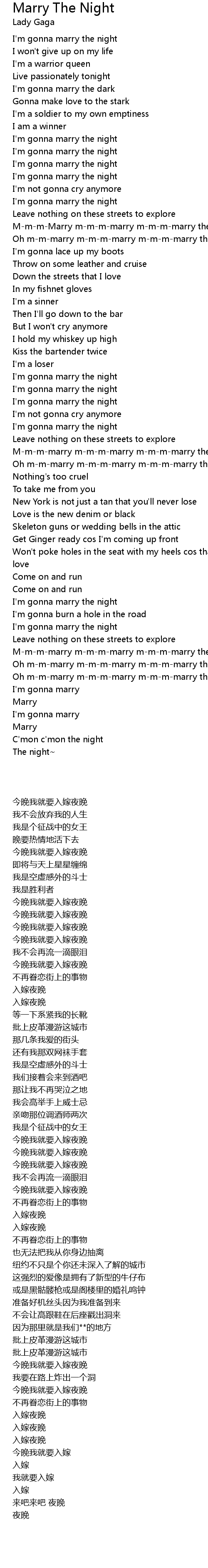 | [01:03.450] | Oh m-m-marry m-m-m-marry m-m-m-marry the night |