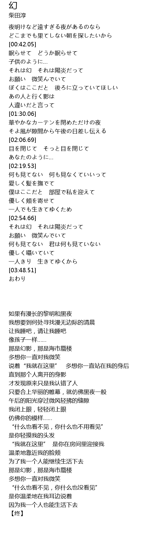 | [00:42.47] | 眠らせて どうか眠らせて |