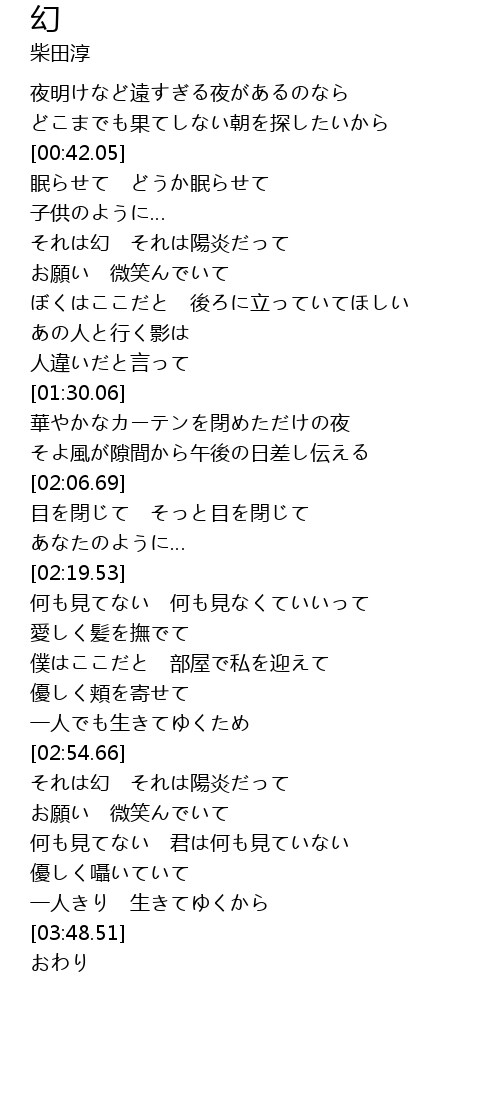| [00:54.76] | それは幻 それは陽炎だって |