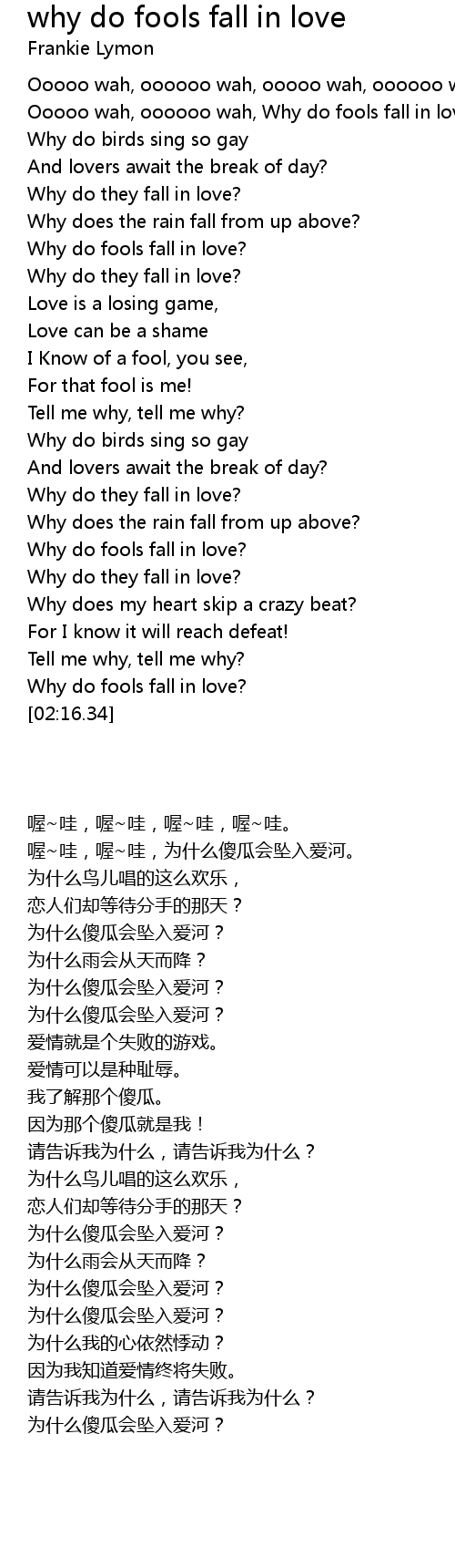 [00:09.71] Ooooo wah, oooooo wah, Why do fools fall in love