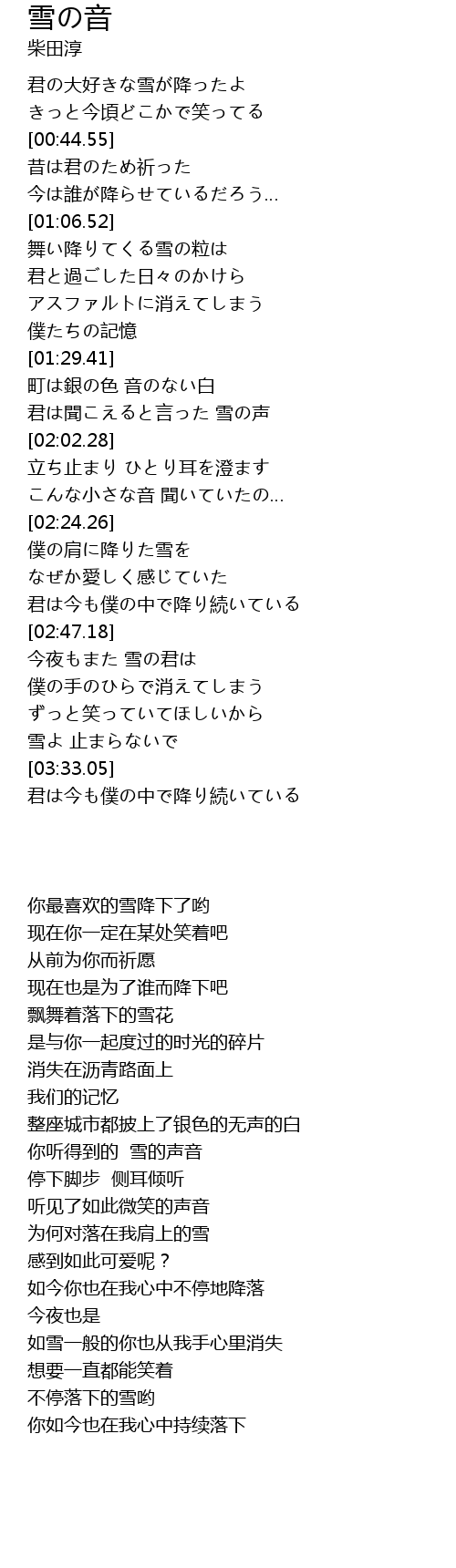 | [01:50.80] | 君は聞こえると言った 雪の声 |