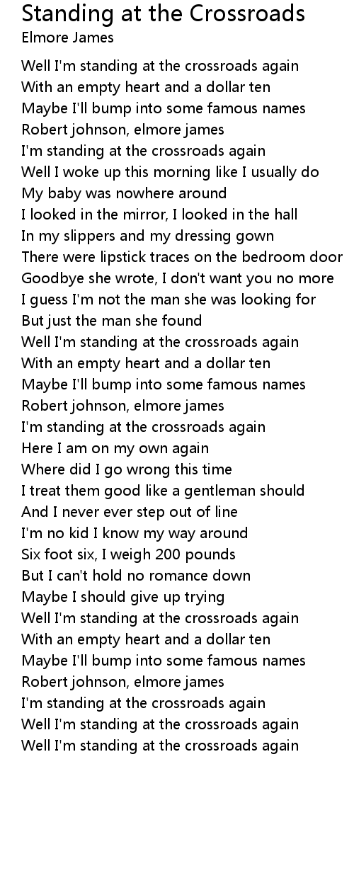 Well I'm standing at the crossroads again |