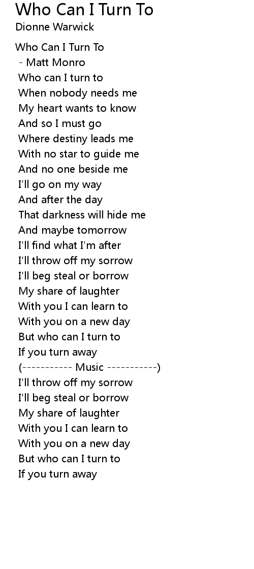 | Song | Who Can I Turn To |
