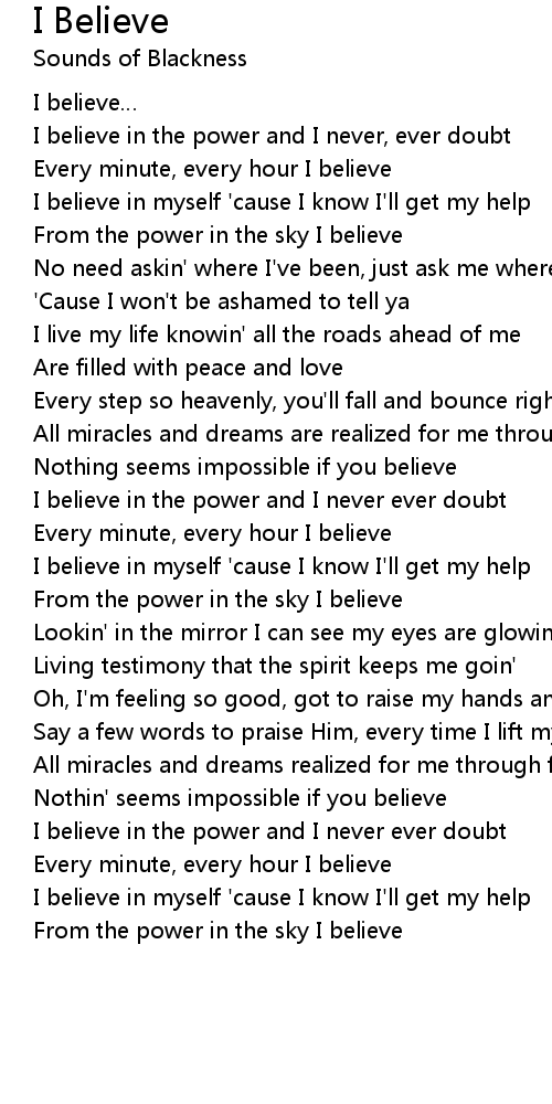 | I believe in myself ' cause I know I' ll get my help | |
