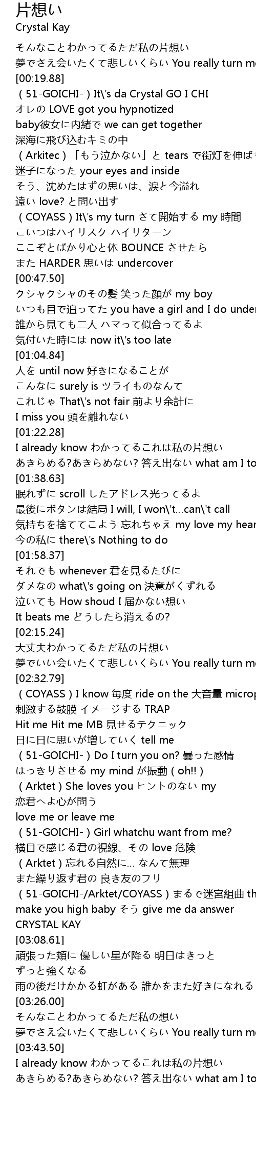 | [00:01.94] | そんなことわかってるただ私の片想い |