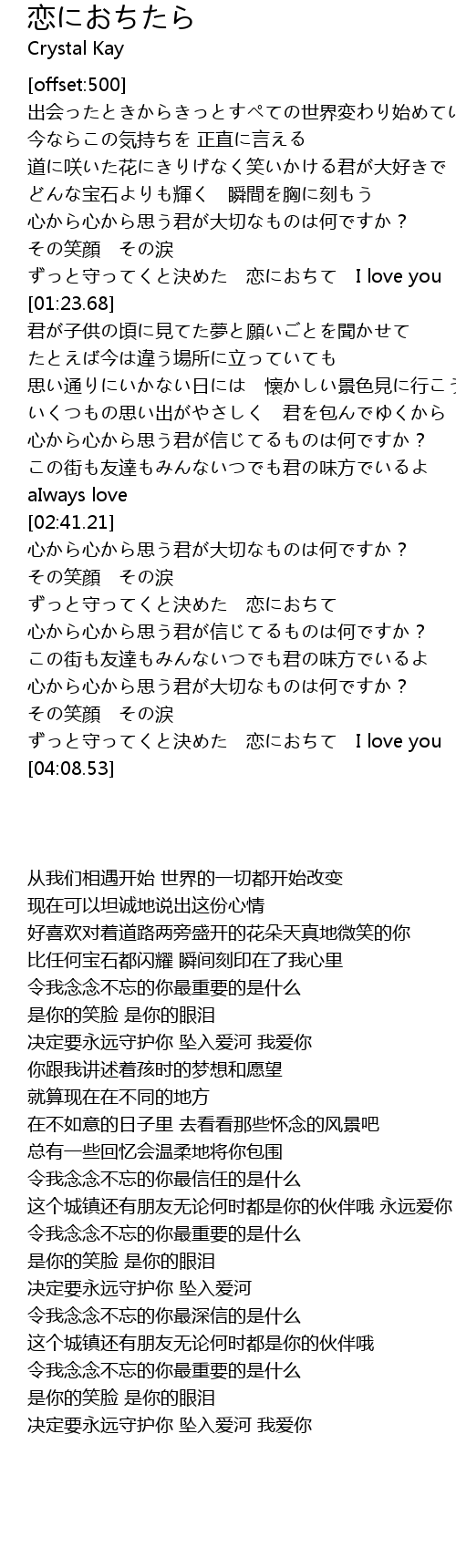 | [03:52.25] | ずっと守ってくと決めた 恋におちて I love you |