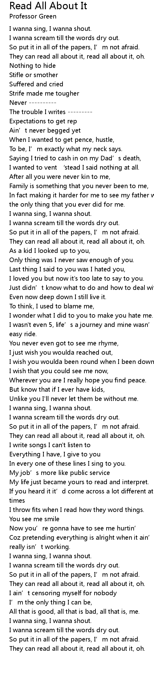 | [00:15.520] | They can read all about it, read all about it, oh. |
