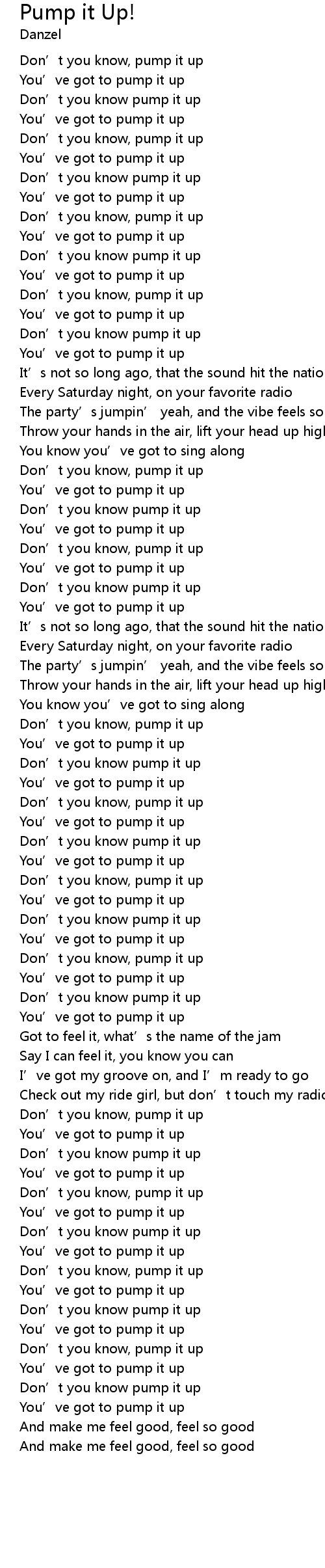 | Don' t you know, pump it up | |