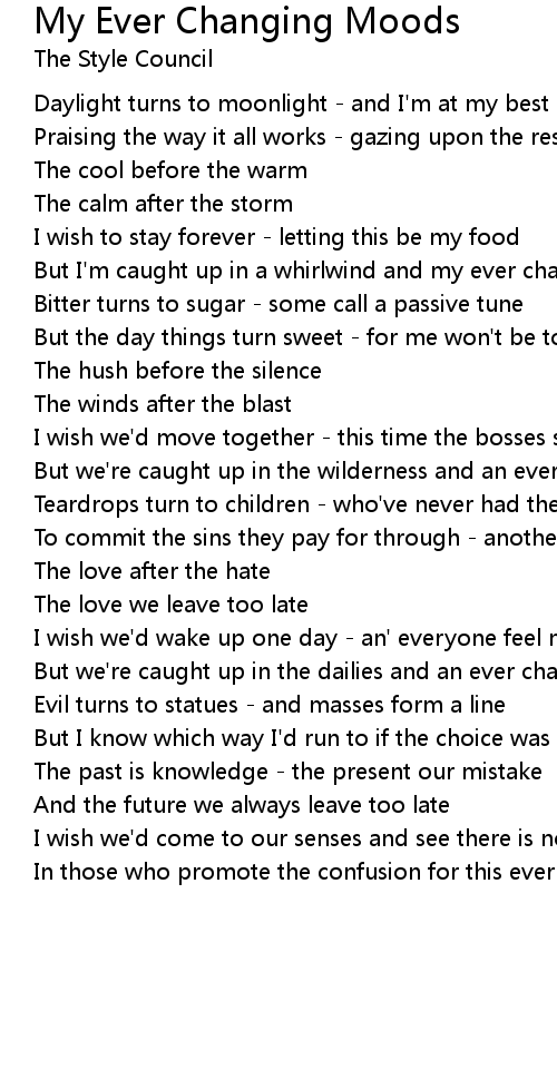 Song My Ever Changing Moods