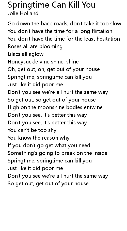 Springtime, springtime can kill you |