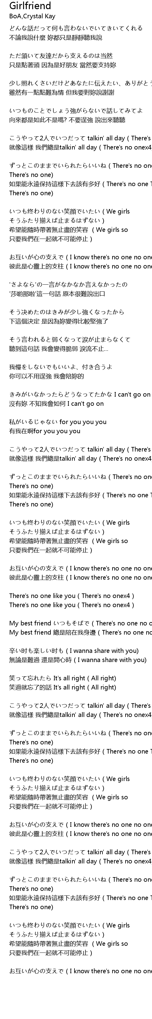 | xī wàng néng suí shí dài zhe wú zhǐ jǐn de xiào róng We girls so zhǐ yào wǒ men zài yì qǐ jiù bù kě néng tíng zhǐ | |