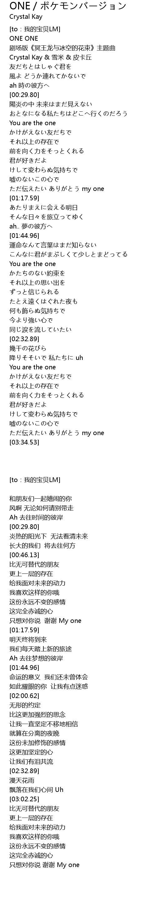 | [00:11.00] | Crystal Kay & 雪米 & 皮卡丘 |