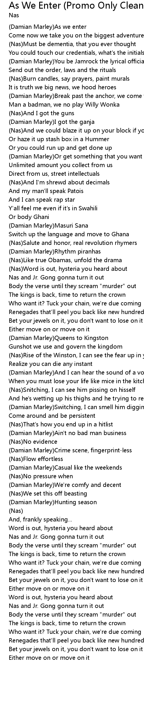 (Damian Marley)As we enter |