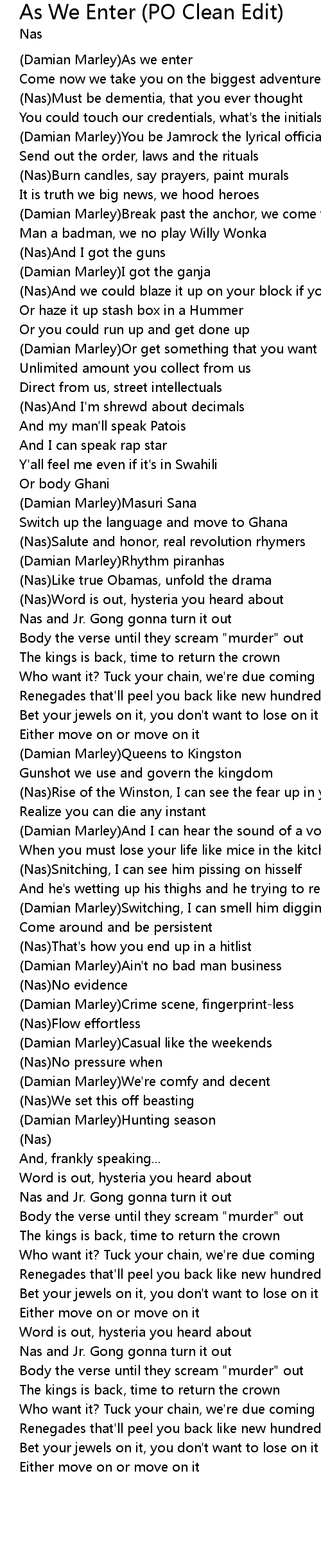(Damian Marley)As we enter |