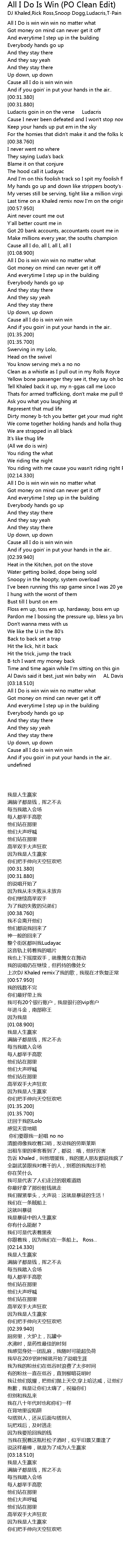 | [01:09.900] | All I Do is win win win no matter what |