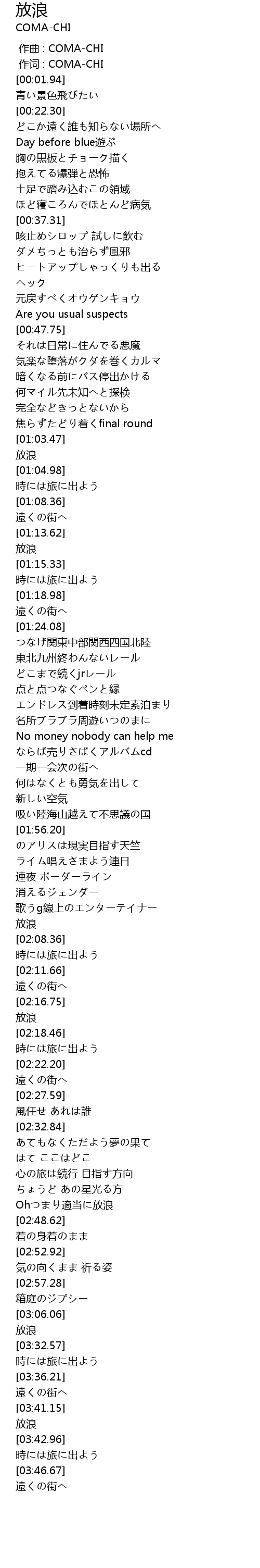 | [02:17.53] | 放浪 |