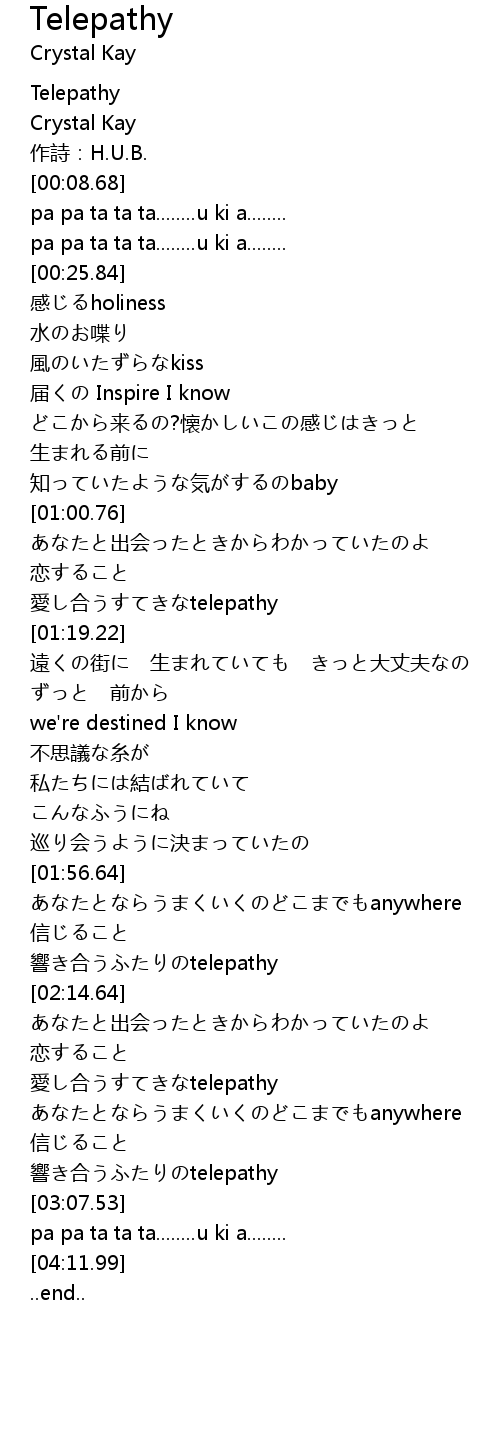 | [02:08.97] | 響き合うふたりのtelepathy |