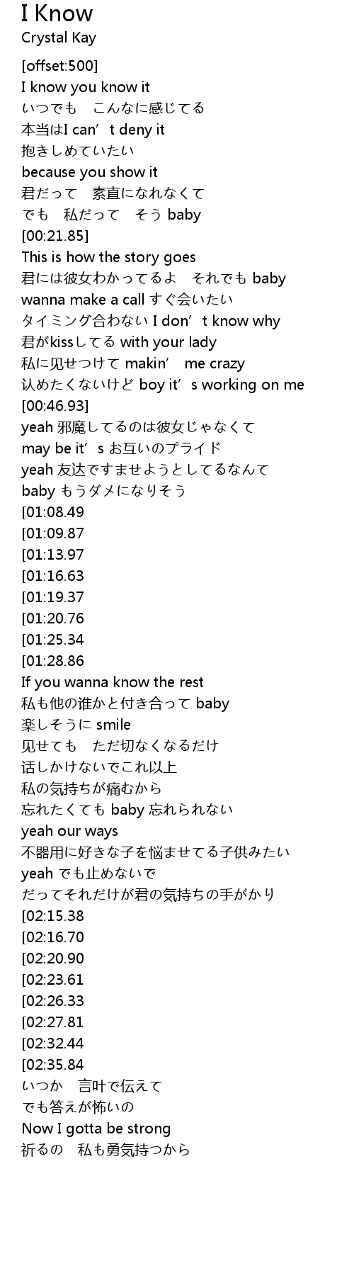 | [00:26.12] | 君には彼女わかってるよ それでも baby |
