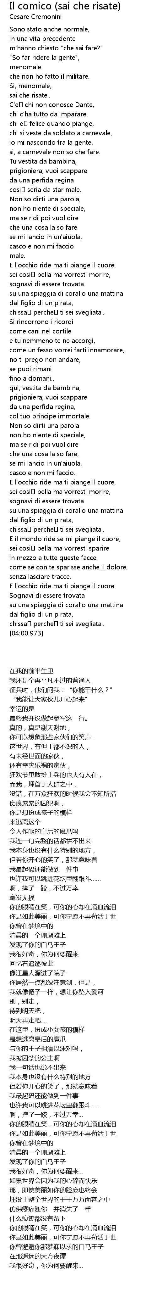 | [03:34.940] | E l' occhio ride ma ti piange il cuore. |